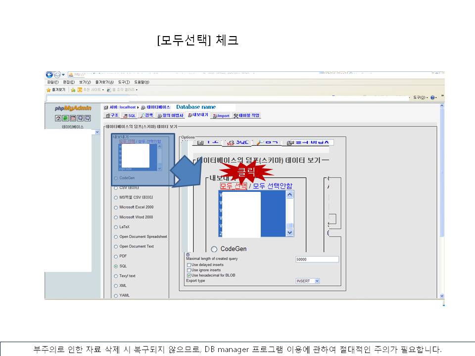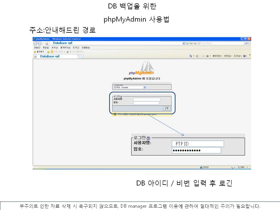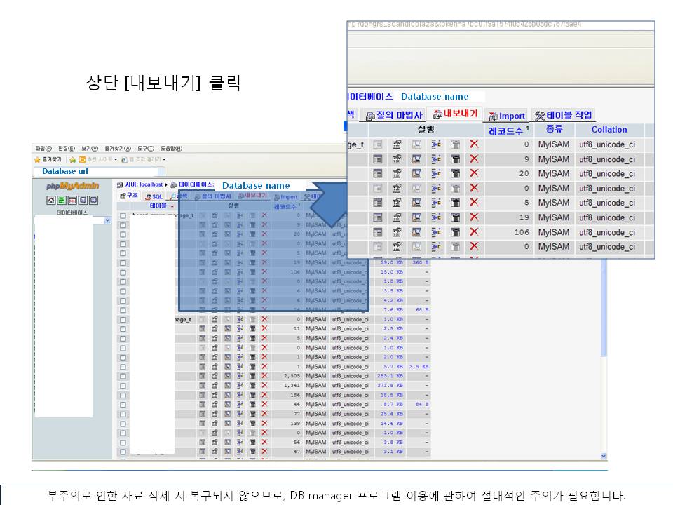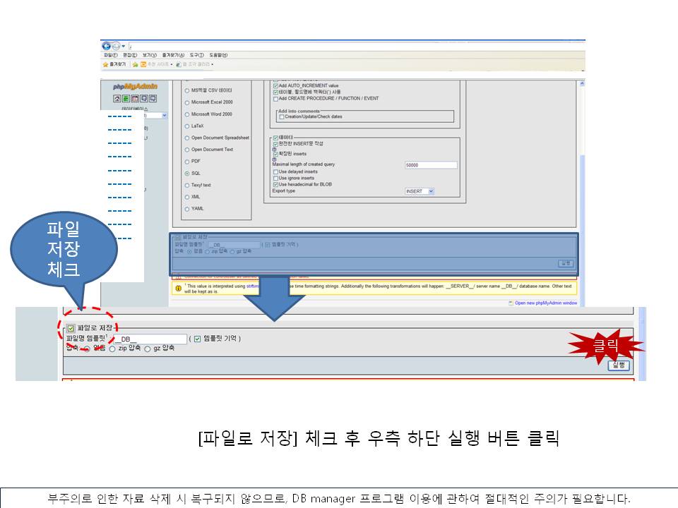 DB ¹é¾÷À» À§Çؼ­´Â phpMyAdmin ÇÁ·Î±×·¥ÀÌ ÇÊ¿äÇÕ´Ï´Ù.
