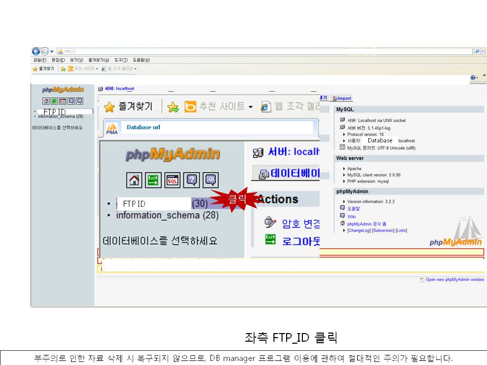 ³×À̹ö µî¿¡¼­ phpMyAdmin À» °Ë»öÇϼż­ ´Ù¿î·ÎµåÇϽŠÈÄ FTP¸¦ ÀÌ¿ëÇÏ¿© À¥ÇϵåÃÖ»óÀÇ Æú´õÇÏ¿¡ ¿Ã·Á³õÀ¸½Ã°í,